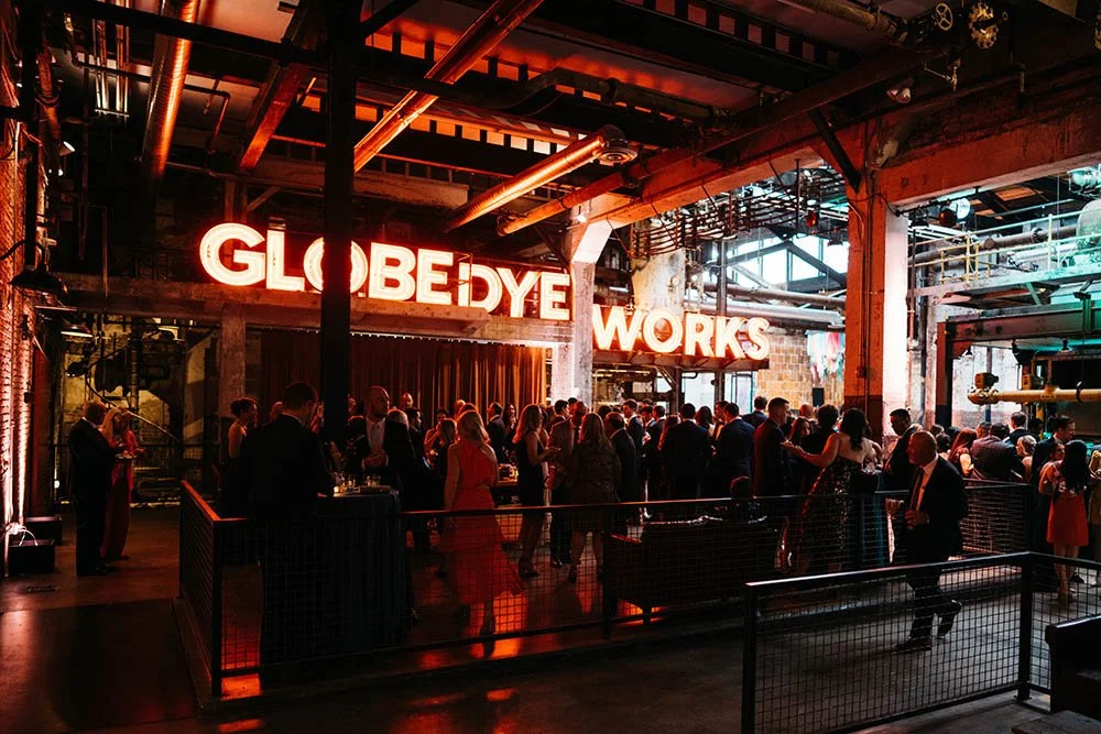 Description: Once a 19th-century yarn-dyeing factory, Globe Dye Works has been reborn as an industrial-chic venue that truly embodies its motto: “Where Art Meets Industry.” The Boiler Room features soaring 35-foot ceilings, relics of the old factory, and 12,000 square feet of raw space for weddings, art shows, and more. With brick walls, steel beams, and a thriving community of artists and makers, the building feels alive with creativity. Photographing weddings here is like stepping into a living canvas—light and shadow dance across the textures, and every couple gets to carve their own story in a space once built for making things. It’s edgy, authentic, and perfect for celebrations as bold as the building itself.