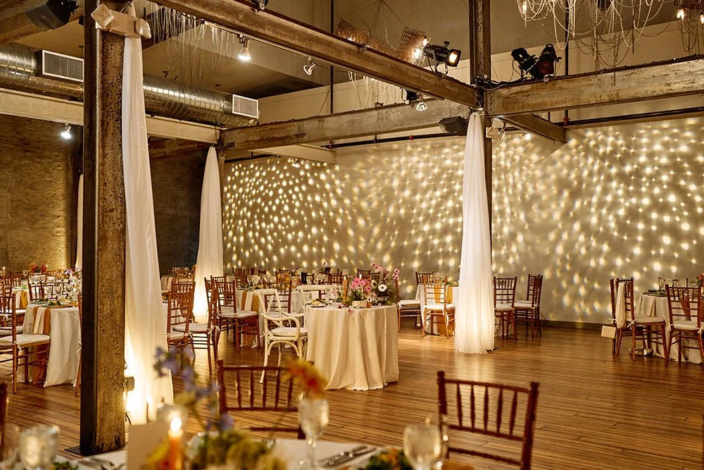Description: Tucked down an Old City alley, Power Plant Productions is a 1903 power station transformed into a one-of-a-kind event space. Its soaring 25-foot ceilings, arched windows, and white brick walls give it a bright industrial aesthetic that’s both dramatic and welcoming. By day, natural light pours in; by night, string lights and vintage furnishings create a cozy, artistic energy. The 4,500-square-foot loft doubles as a studio, which means it’s endlessly flexible—whether you want sleek and modern or raw and minimal. I love shooting here because those giant windows and clean walls feel like a built-in backdrop, but always with personality. Every couple brings their own vision, and this space adapts beautifully—never the same twice, always fresh and creative.