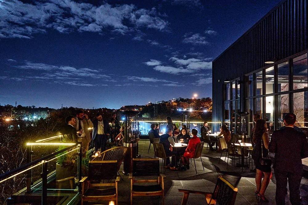 Description: Perched atop a boutique hotel overlooking the Schuylkill River, Lark is an intimate rooftop venue that feels both elevated and effortless. Co-owned by Top Chef winner Nicholas Elmi, it pairs sweeping waterfront views with a sleek interior of warm woods, marble, and floor-to-ceiling glass. A wraparound deck makes golden hour cocktails unforgettable, while inside, the bar and lounge strike that perfect balance of swanky and comfortable. Known for Mediterranean-inspired menus and thoughtful hospitality, the team can host anything from cozy dinners to full buyouts. As a photographer, I love how the light pours in—soft, natural, and cinematic—making every candid connection glow against the backdrop of the river. It’s stylish but never pretentious, the kind of space where couples can celebrate in luxury while staying grounded in real emotion.