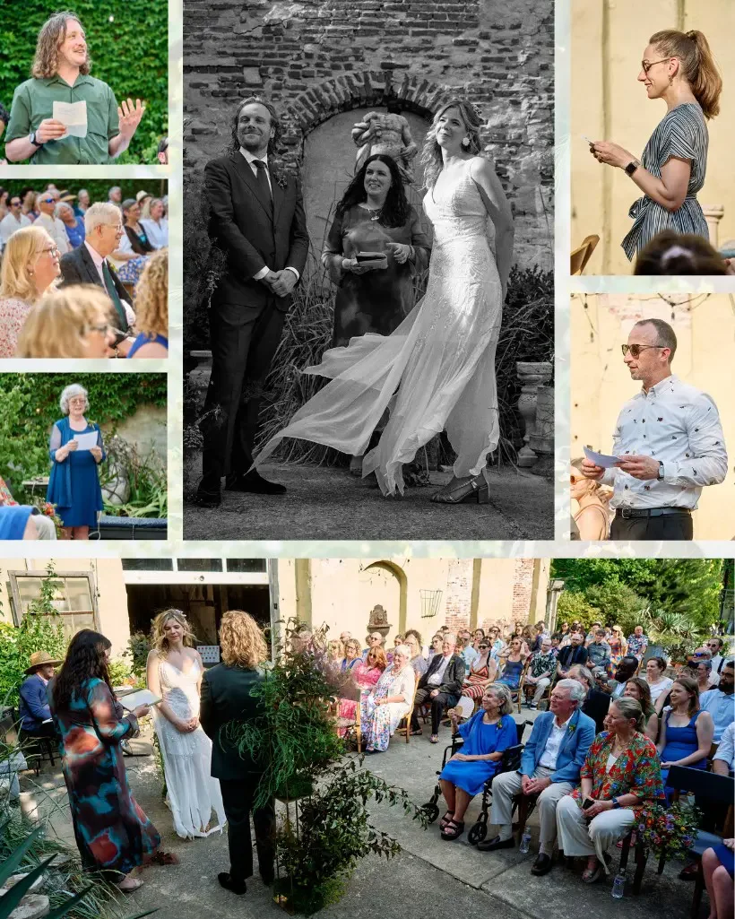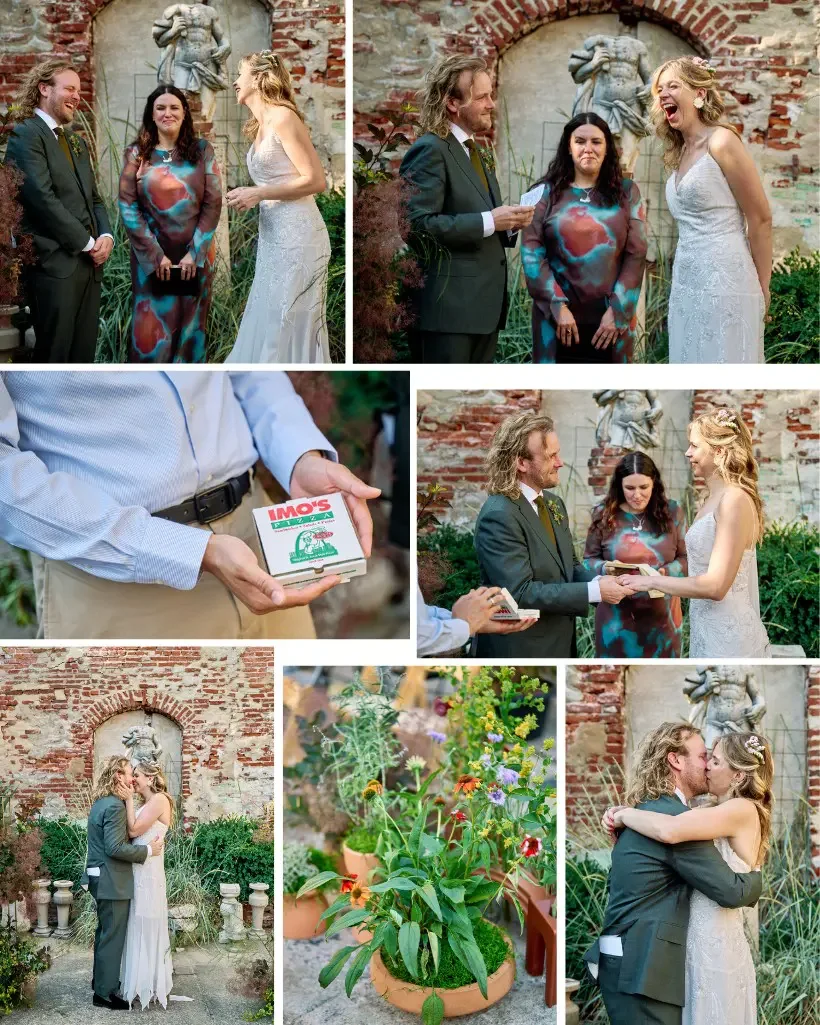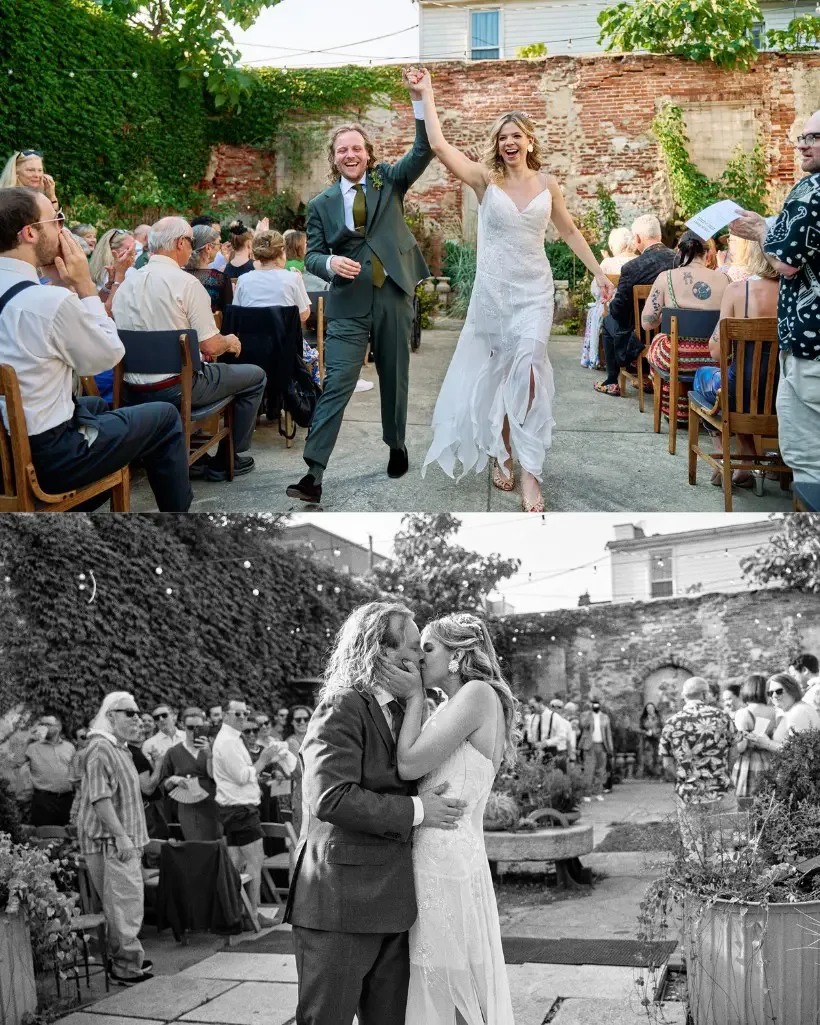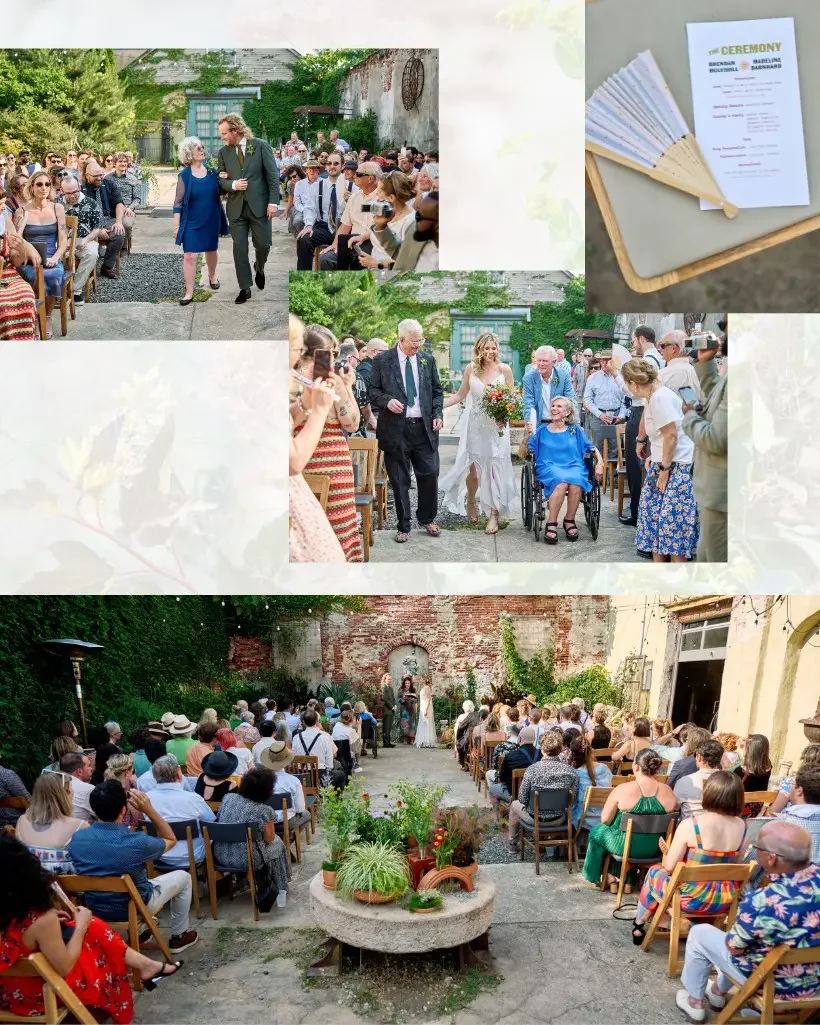 Guests found their seats in the courtyard and the ceremony unfolded against the weathered arch witnessing sweet, personal, and full of laugh-through-tears moments….