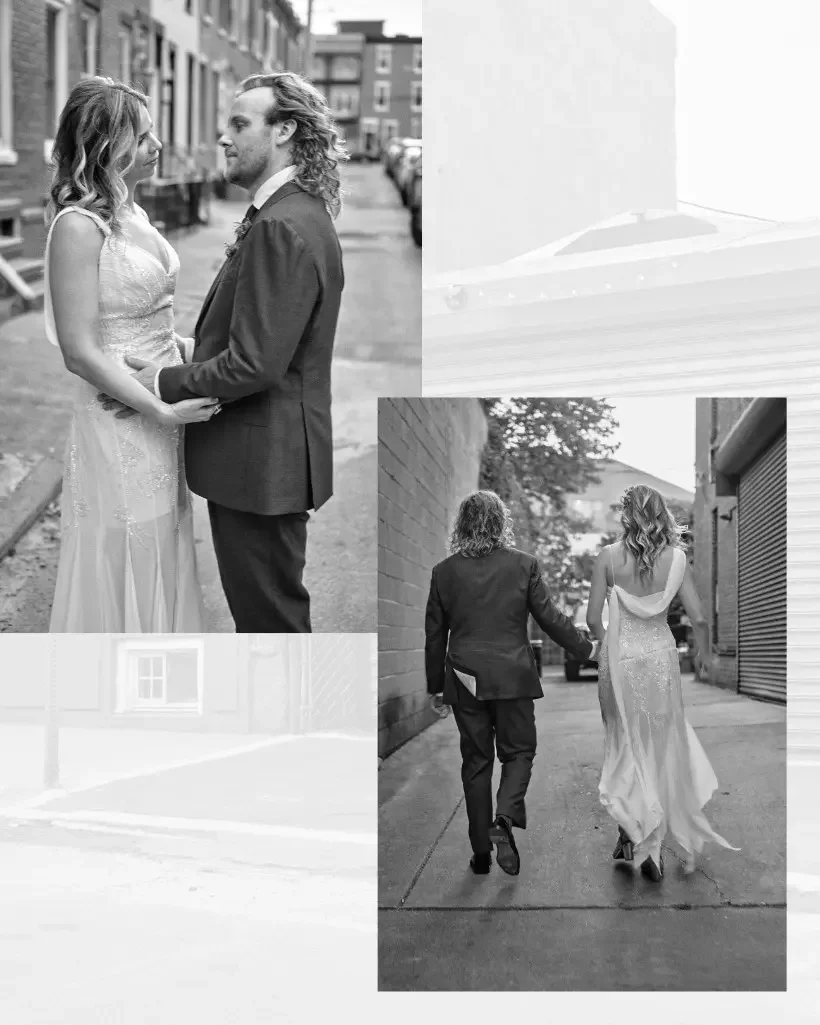 Smart, funny and easygoing, Maddy and Brendan brought the best energy to this hidden garden spot in Fishtown neighbourhood of Philadelphia. We started with a first look along the ivy and brick, Maddy in vintage gown, pulled in family for portraits, then slipped away for a quick wander with just the two of them.
